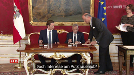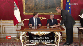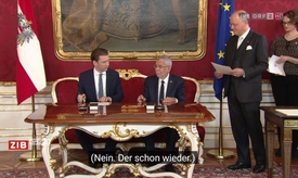 Vélhetően egy teleregény mondatait vágták be az élőképek alá, amikor az új kormány beiktatását sugározták a bécsi Hofburg Mária Terézia terméből. A nézőnek úgy tűnhetett, mintha ezek a profán mondatok Sebastian Kurz, a kormánytagok, illetve Alexander Van der Bellen államfő száját hagyták volna el.