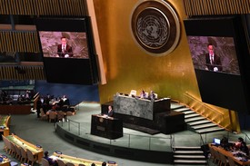 A nemzetközi közösségnek, benne az Európai Unióval és az ENSZ-szel nem a migráció szervezésével és ösztönzésével kellene foglalkoznia, hanem az otthonaikat elhagyó milliók visszatelepítésével - hangsúlyozta Szijjártó Péter az ENSZ Közgyűlésének a szíriai elszámoltathatósági mechanizmusról kedden New Yorkban rendezett vitájában.