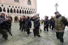 Nicola Ligi, a velencei katasztrófavédelem koordinátora az MTI-nek elmondta, hogy még a kora téli árvízhez hozzászokott Velencét is térdre kényszerítette, hogy a szerda éjjeli rendkívüli, 187 centiméteres ár óta folyamatos a tetőzés, és a város egyfolytában víz alatt áll.