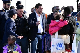 A légibázison novemberi napsütésben elmondott beszédében Salvini azt mondta: „Ez a napos idő a legjobb arra, hogy fogadjuk ezeket a gyerekeket, s apaként a legszebb jövőt kívánom nekik a reményeim szerint a következő ötven évre hazájukká váló országban.”
