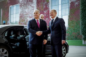 Olaf Scholz német kancellár fogadja Orbán Viktor miniszterelnököt Berlinben 2024. október 14-én