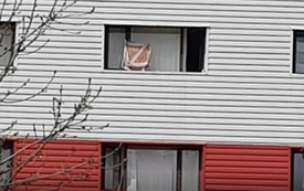 Így festett a törölköző a kollégium ablakában: