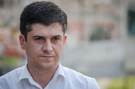 Nikola Srbov történésszel, az Állítsuk meg Sorost mozgalom (SOS) alapítójával a főtéren, Nagy Sándor monumentális lovas szobránál találkozunk.