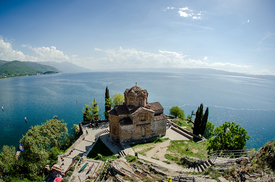 Szkopjétól távol, az Ohridi-tavon hajózunk. Hétszáz méterrel vagyunk a tengerszint felett. A víz kristálytiszta, az ég kék, a távolban festői hegyek. Sok-sok évszázaddal ezelőtt itt, a környéken született Cirill és Metód tanítványa, Szent Naum. Az egykori kolostor ma is ott áll, ahova 905-ben Naum építette. Innen indult el a szláv írásbeliség, tanítványok százai, ezrei rajzottak ki az Ohrid melletti szellemi műhelyből. Az Ohridi-tó közepéről nézve, ahogyan a vízen lebegünk, három ország határvidékén járunk. Hátunk mögött Macedónia, előttünk Albánia, kicsit odébb Görögország. Minden ország egy karnyújtásnyira egymástól.