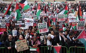 Palesztinokat támogató tüntetõk a londoni Trafalgar téren 2023. november 4-én.