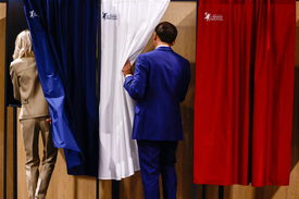 Emmanuel Macron francia elnök és felesége, Brigitte Macron szavaz az elõrehozott parlamenti választások elsõ fordulójában Le Touquet-Paris-Plage településen 2024. június 30-án.