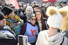 Sanna Marin finn miniszterelnök, a Szociáldemokrata Párt (SDP) elnöke kampányol Vantaában 2023. március 31-én, két nappal a finn parlamenti választások előtt.