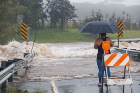 A nagy sziget keleti felén 24 óra leforgása alatt csaknem 510 milliméter csapadék hullott – közölte az amerikai meteorológiai szolgálat. A vihar óránkénti 80 kilométeres széllökésekkel érkezett meg. Sérültekről egyelőre nem érkezett hír.