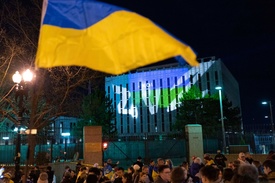 Pénteken, a harcok megkezdésének évfordulóján az Egyesült Államokban élő ukránok és szimpatizánsok Oroszország amerikai nagykövetsége előtt gyűltek össze, hogy tiltakozzanak az orosz fél által indított háború ellen.