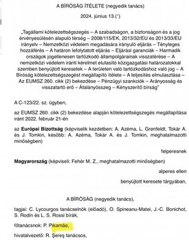 A 2020 májusában született ítélet előtt az EUB főtanácsnoka, az észt Priit Pikamäe véleményét osztotta az unió törvényszéke, és most sem volt ez másként, az EU Bíróságának megdöbbentő döntésénél sem – olvasható a bejegyzésben.