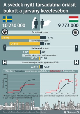 Ahhoz, hogy világos képet kapjunk a skandináv országban szabadjára bocsátott járvány pusztításának mértékéről, ami a lakosság méretét illeti, megfelelő összehasonlítási alapként szolgál Magyarország (9 773 000). Hazánk járványügyi statisztikái szerint a fertőzöttek száma nem éri el a 4 ezret, a halálesetek száma pedig 499. Ebből fakadóan, amíg Svédországban az egymillió lakosra jutó halálesetek száma a 400-hoz közelít, addig hazánk mortalitási rátája mindössze 51.
