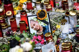 Az áldozat iránti kegyelet jeleként elhelyezett virágok és mécsesek. Fotó: MTI/EPA