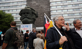 A szélsőjobbosnak aposztrofált tömeg paradox módon a város egyik nevezetességének számító chemnitzi (korábban Karl-Marx-Stadt) hatalmas Marx Károly-szobor előtt gyülekezett, ezzel is kifejezve a tüntetésen is többször hangoztatott mondatot, hogy „forradalmi helyzet” van.