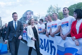 Szijjártó Péter is felszólalt a belgrádi nagygyűlésen