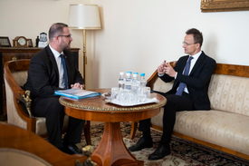 Szijjártó Péter külgazdasági és külügyminiszter fogadja hivatalában Christian Hafeneckert, az Osztrák Szabadságpárt (FPÖ) főtitkárát 2025. február 21-én
