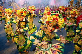 Balinéz táncosok szilveszteri kulturális ünnepségen lépnek fel az indonéziai Bali szigetének székvárosában, Denpasarban 2025. december 31-én.