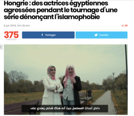 „A múlt hónapban két egyiptomi színésznő erőszakos támadás áldozatává vált Magyarországon, Budapest utcáin, amikor éppen egy rövidfilmet forgattak, amely az iszlamofóbia csapását leplezi le a vén kontinensen. A sors igencsak kegyetlen iróniája. A hagyományos iszlám kendőt viselő (testvérpár) a filmbéli szerepük bőrébe bújt, amikor egy magyar autós, láthatóan magán kívül, hirtelen lefékezett előttük, majd kiugrott a kocsijából, dühösen elszántan arra, hogy ártson. Ez a veszélyes dühöngő, akit annyira elvakított az iszlám iránti gyűlölete, hogy nem vette észre sem a kamerát, sem a fényszórókat, rávetette magát az egyik nőre, hogy hallatlan brutalitással letépje a fejkendőjét (hidzsáb), majd a késztetése beteljesítése után elkotródott, de előbb még rákiáltott a nőkre, hogy hagyják el az országát. Ez a váratlan és sokkoló jelenet, amely meglepte a stábot és megrémítette a szerencsétlen színésznőket, akiket aközben filmeztek, miközben egy helyi park felé haladtak, hagyta behatolni a muzulmánellenes rasszizmus ijesztő valóságát egy forgatási helyszínre, és felülmúlni a fikciót. Egy fikciót, amelyet a ramadán alatt sugárzott egyik adás ékesítésére (sic!) találtak ki. A színésznő, akit a legrosszabb fajta iszlamofób választott magának célpontul, a valódi életben nem visel fejkendőt. E rögtönzött jelenet által traumatizálva, amely elrontotta a forgatást, keserűen megállapítja, hogy ez az iszlamofóbia nyugtalanító terjedését tükrözi Nyugaton.