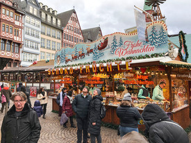 Frankfurt egyébként ezen a téren hagyományőrző. A történelmi katedrálistól pár utcára megrendezett vásár bejáratánál büszkén virít a „Weihnachtsmarkt” felirat. Ahogy pedig a karácsonyi vásárokon dukál, a látogatókat itt is jó disznókolbász és forralt bor várja. A tíz méter magas kivilágított karácsonyfa mellett pedig életnagyságú, fából faragott betlehemi jászol mellől figyeli a hömpölygő tömeget a Szent Család, a pásztorok és a három napkeleti bölcs.