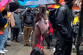 A National Review munkatársa, Kathryn Jean Lopez, aki a helyszínen tartózkodott, azt mondta: „A fürdőruhás lány határozottan úgy tűnt, hogy balhét akar, és felszólította a papot, Moscinski atyát, aki egy ferences szerzetes és akit többször is «ribancnak» nevezett, hogy jöjjön ki és nézzen szembe vele. (.) Néhányan eljutottunk a Planned Parenthoodhoz. Az atyát folyamatosan heccelték. Főleg gyerekes dolgokat kiabáltak, és gúnyt űztek abból, hogy az egyházon belül viselt neve nem ugyanaz, mint a születési neve.”