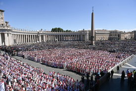 A Szentszék becslése szerint az istentisztelet végére már több mint 250 ezren gyűltek össze a téren és az oda torkolló utcákban, közte a Vatikánhoz vezető via della Conciliazone nevű széles sugárúton.