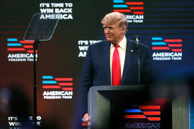 Trump arra hívta fel a figyelmet, hogy Irán az atomhatalommá válás küszöbén áll, Kína a világ szuperhatalmává válik, Oroszország pedig háborúban áll Ukrajnával. „Ez együtt mindent lángra lobbanthat, ha nem tisztelik az országunkat szerte a világon. Nem számíthatsz Kínára, hogy majd újra naggyá teszi Amerikát” – fogalmazott a volt elnök.