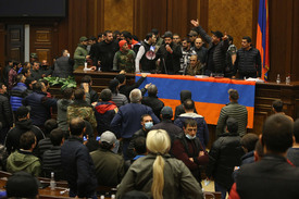 Tüntetők hatoltak be az örmény parlament és kormány épületébe Jerevánban keddre virradóra az ellen tiltakozva, hogy Nikol Pasinján örmény miniszterelnök korábban bejelentette: megállapodást írt alá a hegyi-karabahi fegyveres konfliktus lezárásáról Ilham Aliyev azerbajdzsáni elnökkel és Vlagyimir Putyin orosz államfővel.