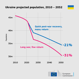 A kihívás óriási, ám az új minisztérium aligha tud megbirkózni a feladattal, ha a problémát nem a gyökereinél igyekszik megragadni és lehetőség szerint orvosolni. Az elnök azonban ebben is Kreml kezét látja; mint a külügyminisztérium állomány ülésén fogalmazott, a külföldre távozott állampolgárok az orosz propaganda hatása alatt állnak, és így Moszkva igyekszik megfosztani őket a hazájukhoz fűződő kulturális kötelékektől. A minisztérium fő feladata tehát az elnöki iránymutatás alapján az országot elhagyókra gyakorolt orosz befolyás ellensúlyozása lesz, ami téves megközelítése a problémának. A hatalom azzal számol, hogy távozók felét képes lesz hazavinni, így Ukrajna lakossága 2033-ra elérheti a 35 millió főt. Optimista célkitűzés ez annak fényében, hogy az ENSZ egyik előrejelzése 2100-ra 15,3 millió lakossal számol Ukrajnában. A problémák nem a háborúval kezdődtek, az csak felgyorsította az enélkül is drámaian romló demográfia trendet. Az ENSZ adatai szerint Ukrajna már a konfliktus kitörése előtt is egyike volt annak a 23 országnak, ahol húszszázalékos népességcsökkenést jósoltak 2050-re, és 50 százalékosat az évszázad végére.