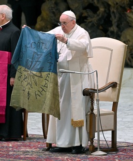 Ukrán zászlóval a kezében sürgette Ferenc pápa a háború megállítását