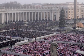 Zsúfolásig tele gyászolókkal a vatikáni Szent Péter tér XVI. Benedek nyugalmazott pápa temetési szertartásán 2023. január 5-én