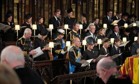 A windsori Szent György-kápolnában tartott szertartáson részt vettek a királyi család legmagasabb rangú tagjai, élükön II. Erzsébet királynő elsőszülött fiával és utódjával, III. Károly királlyal. Jelen voltak Károly testvérei, Anna hercegnő, András yorki herceg és Eduárd, Wessex grófja, valamint a király két fia, Vilmos walesi herceg, a trón várományosa és Vilmos öccse, Harry sussexi herceg.