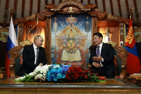 Vlagyimir Putyin orosz (b) és Uhnágín Hürelszüh mongol elnök Ulánbátorban
