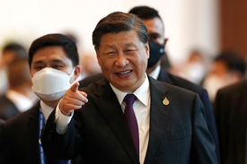 Hszi Csin-ping kínai elnök a gazdasági vezetők tanácskozására érkezik az Ázsiai és Csendes-óceáni Gazdasági Együttműködés, az APEC bangkoki csúcsértekezletén 2022. november 18-án.