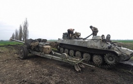 Ukrán katonák felkészülnek az orosz csapatok támadására Donyeck megyében 2022. április 18-án