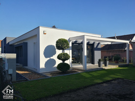 Szintén kortárs épület lett az FM-design Stúdió Építésziroda tervezése: egy vecsési kockaházat bővítettek három lakásos, többgenerációs házzá, külön bejáratokkal.