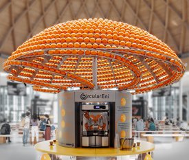 Az installáció több mint három méter magas, és egyszerre 1500 narancs fér el benne. A narancslé hagyományos módon készül, megrendeléskor a gyümölcsöt kettévágja préselés után, de a héja a szerkezet aljába kerül, ahol kiszárítják és megőrlik, miközben politejsavat (PLA) adnak hozzá – ennek eredményeképpen bioműanyagot kapnak. A PLA egy biológiailag lebomló műanyag, amelyet magas keményítőtartalmú gabonafélékből, leginkább kukoricából állítanak elő, és széles körben alkalmazzák, mivel olcsó és használata veszélytelen az egészségre.