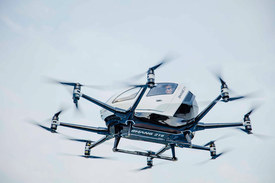 A Volocopter, vagyis a helikopter és drón keveréke 2015-ben az ENSZ párizsi Klímaváltozási konferenciáján a Climate Champion COP21 kitüntetést is megkapta, 2016-ban esett át az első tesztrepülésén. Az Ooredoo nevezetű katari telekommunikációs cég a világ első 5G támogatású légitaxijával, az EHang 216-tal már több mint ezer órát repült úgy, hogy ember is tartózkodott benne. A kétszemélyes villanymotoros légieszközzel egyhuzamban eddig legfeljebb 8,8 kilométeres távolságot tettek meg.