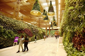 A Kempegovda Nemzetközi Repülőtér új, 2-es utascsarnoka Karnataka indiai állam székvárosában, Bengaluruban 2022. november 12-én. A teljes egészében megújuló energiával működő terminál belső tereinek nagy részét növények díszítik, és a környezetét is kertként alakították ki